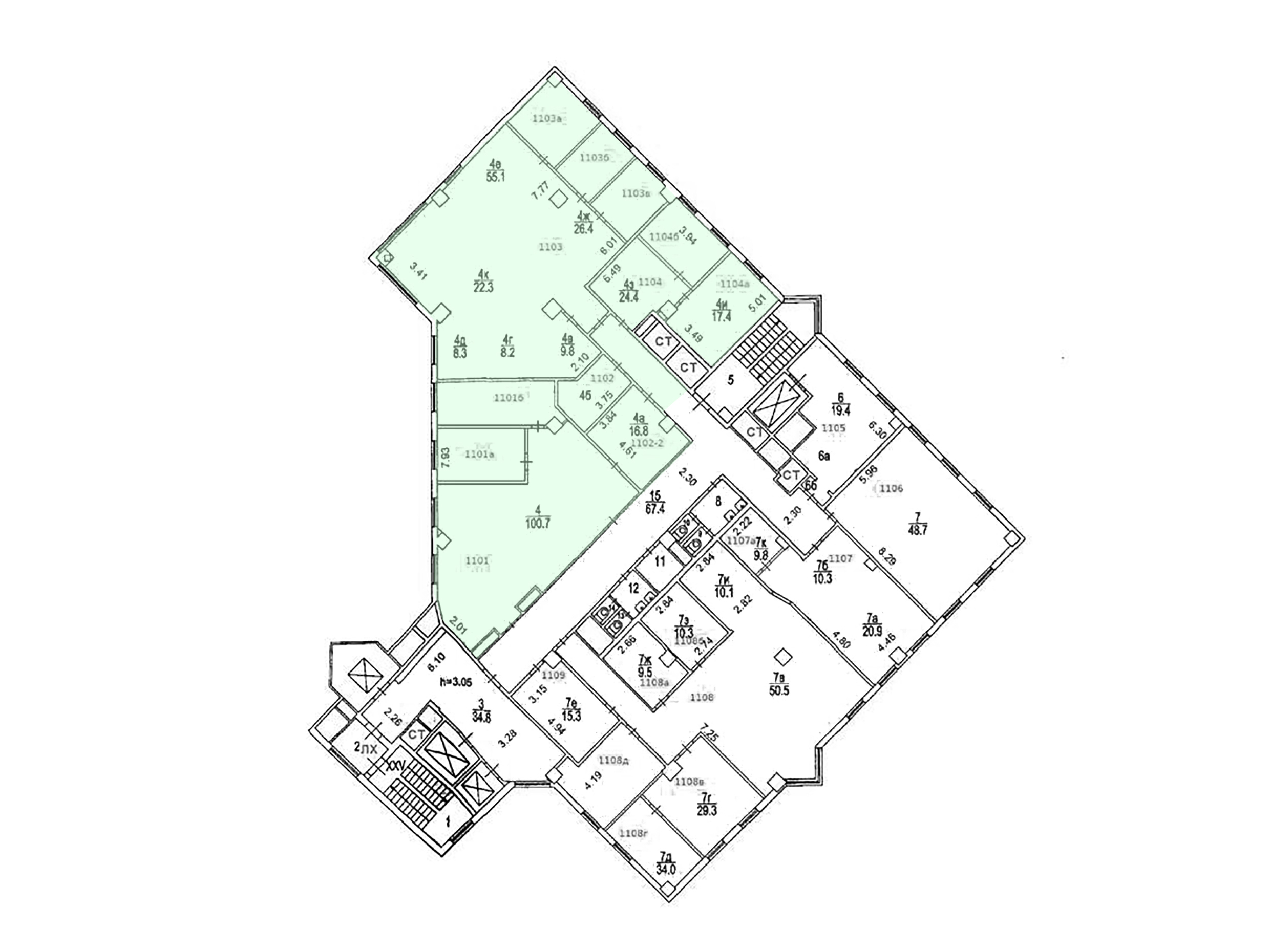 Арендопригодная площадь, кв.м